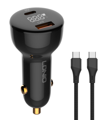 LDNIO φορτιστής αυτοκινήτου C101 με καλώδιο, USB/USB-C, 100W PD, μαύρος