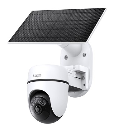 Smart ηλιακή κάμερα εξωτερικού χώρου της TP-Link με εικόνα ανάλυσης 2K και ενσωματωμένο μικρόφωνο και ηχείο που επιτρέπει την αμφίδρομη μεταφορά φωνής και ήχου.