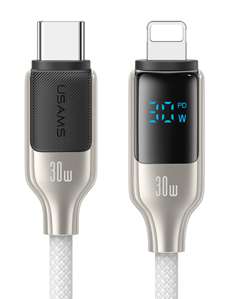 Καλώδιο φόρτισης και μεταφοράς δεδομένων Lightning σε USB-C της Usams. Υποστηρίζει φόρτιση με απόδοση έως 30W και μεταφορά δεδομένων με ταχύτητα έως 480Mbps.