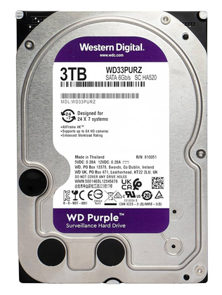 WD σκληρός δίσκος 3.5″ Purple Surveillance 3TB, 256MB, 5400RPM, SATA III