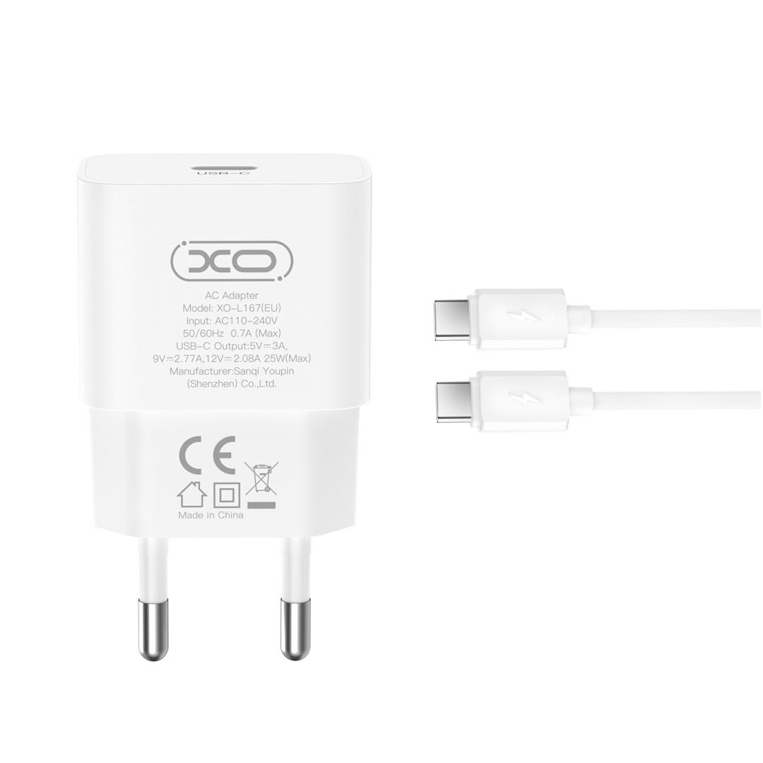 XO L167, ΦΟΡΤΙΣΤΗΣ ΓΡΗΓΟΡΗΣ ΦΟΡΤΙΣΗΣ, 25W, TYPE-C, ΜΕ ΚΑΛΩΔΙΟ TYPE-C ΣΕ TYPE-C, ΛΕΥΚΟ